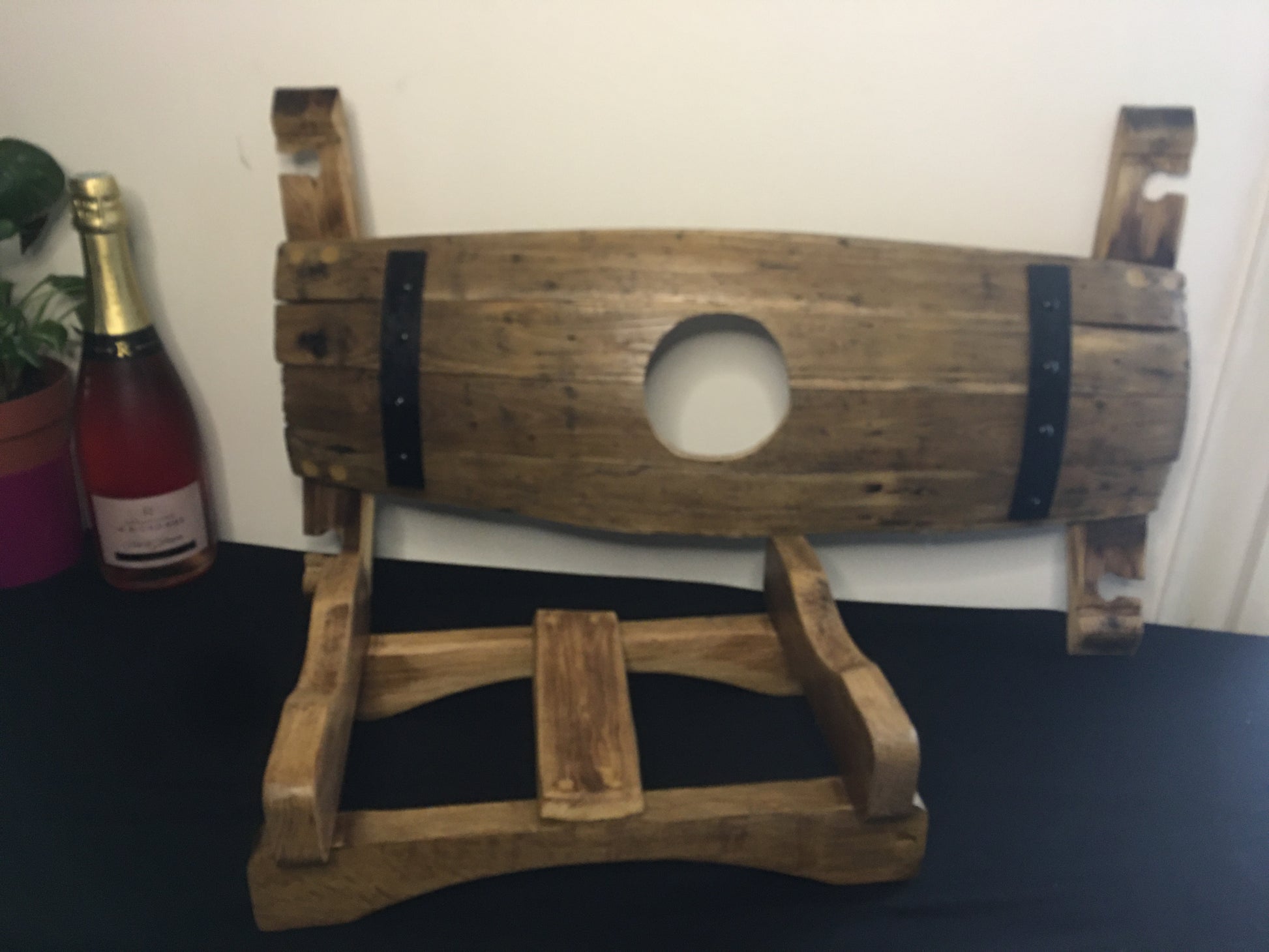 L’arrière du plateau a conservé les fers de tonneau originaux, apportant un aspect vintage et robuste tout en célébrant l’histoire du matériau. Ce détail donne au plateau un charme supplémentaire, mélangeant parfaitement fonctionnalité et mémoire artisanale, on seulement il est une œuvre d’art artisanale et unique mais il est aussi conçu pour durer, avec un pied stable et une construction solide et de stabilité réalisée à la main avec soin, idéale pour ceux qui recherchent des objets décoratifs autentique mais aussi pratiques.